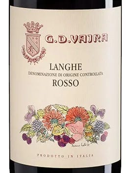 G.D. Vajra Langhe Rosso 2023, Piedmont, Italy. A blend of nebbiolo, barbera and dolcetto, with rare heirloom grapes freise, albarosso, chatus and slarina. Excellent. About $21.