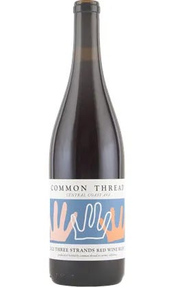 Common Thread Wines Three Strands Red Wine 2022, Central Coast, California. 57% pinot noir, 28% pinot gris, 15% pinot meunier. 148 cases. Excellent. About $28.