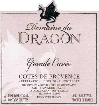 Domaine du Dragon Grand Cuvée Rosé 2024, Côtes de Provence, France. 1/3 each grenache, cinsault and mourvèdre. Excellent. About $25.