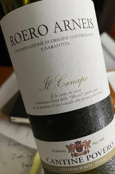 Cantine Povero “Il Canapo” Roero Arneis 2024, Piedmont, Italy. 100% varietal. Excellent. About $16.