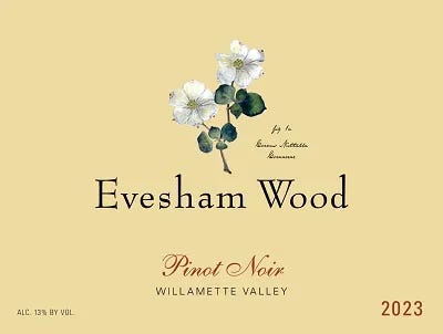 Evesham Wood Pinot Noir 2023, Willamette Valley, Oregon. Excellent. About $27.